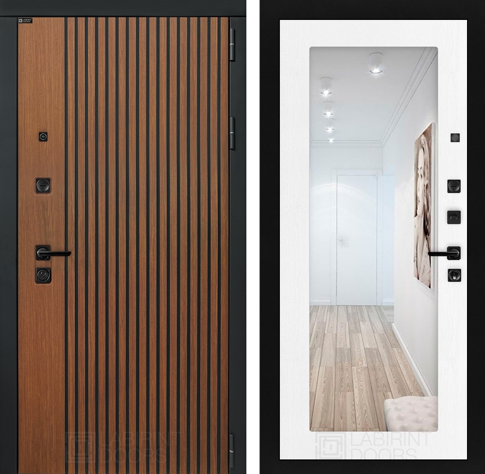 Входная стальная дверь Лабиринт STORM с Зеркалом 18 - Белое дерево