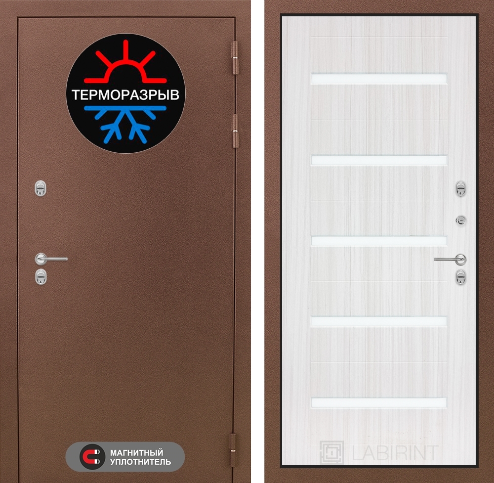 Входная стальная дверь Лабиринт Термо Магнит 01 - Сандал белый, стекло белое