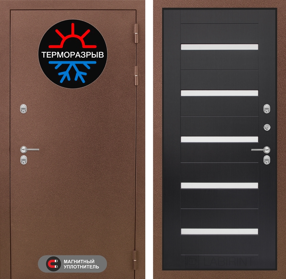 Входная стальная дверь Лабиринт Термо Магнит 01 - Венге, стекло белое