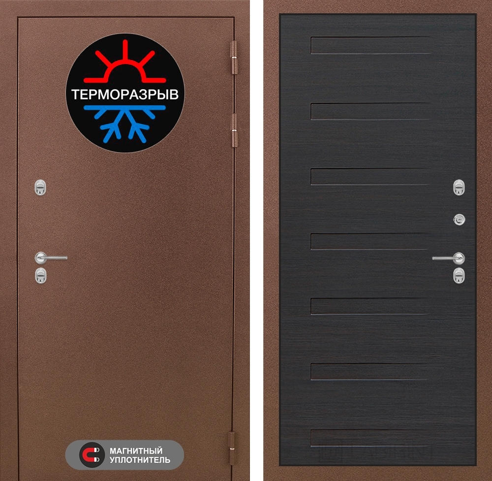 - Цельногнутая, замкнутая утепленная дверная коробка - цвет окраски короба (Антик медный)