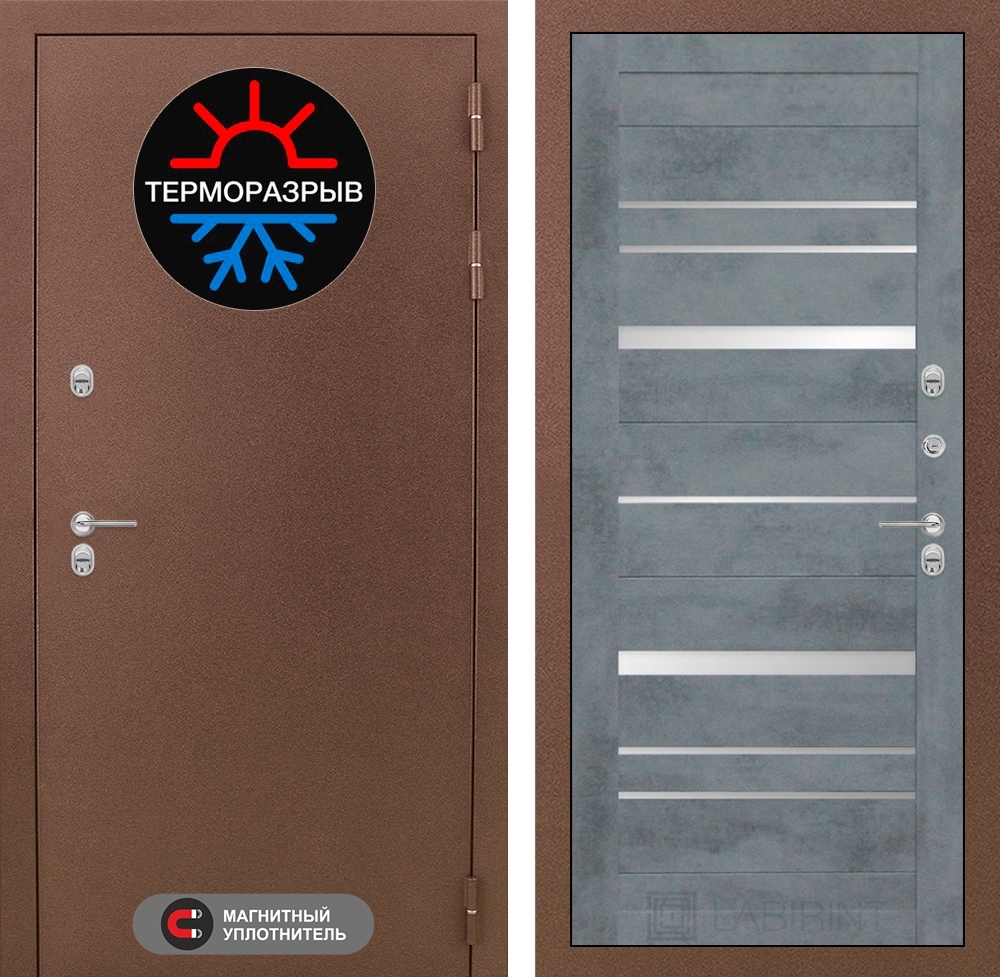 Входная стальная дверь Лабиринт Термо Магнит 20 - Бетон темный, зеркальные вставки