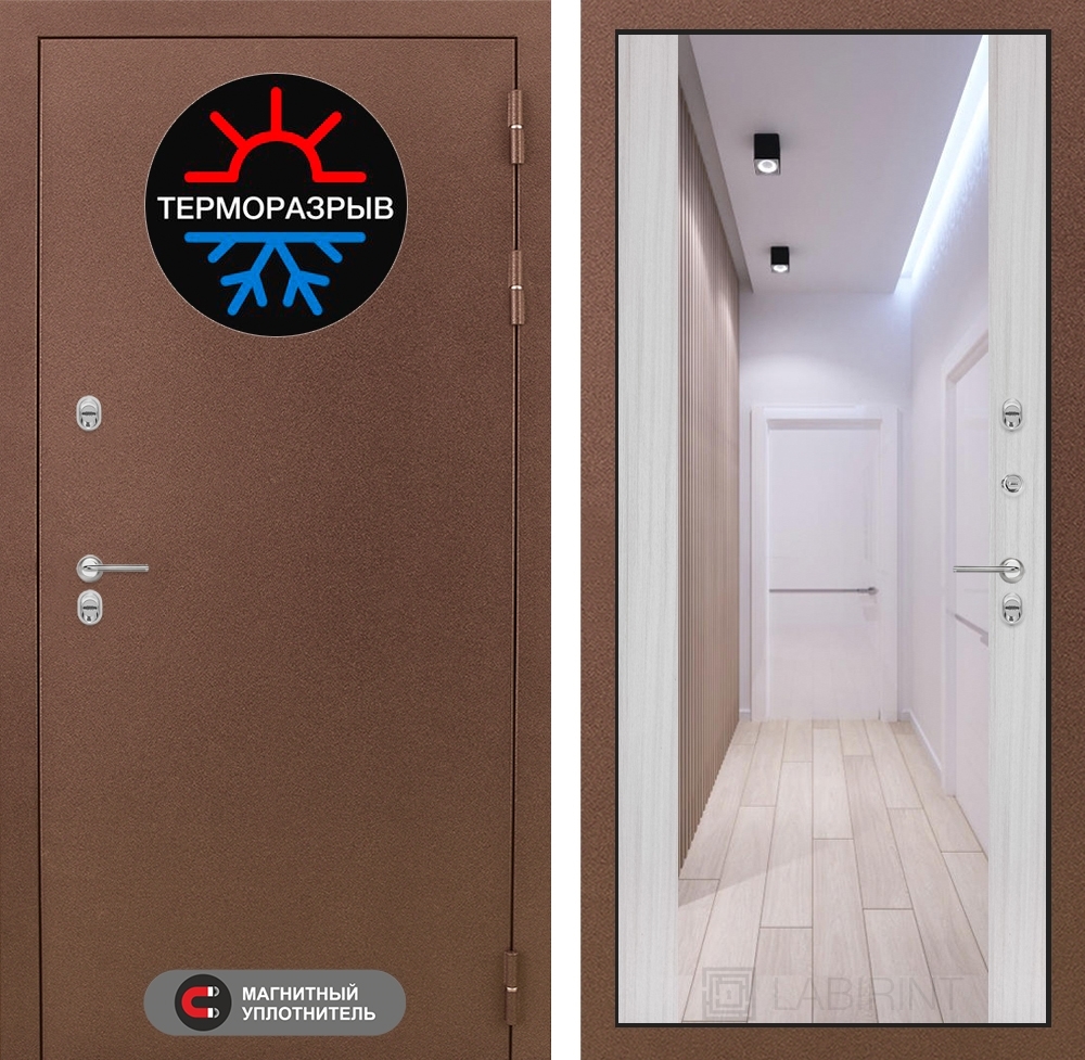 Входная стальная дверь Лабиринт Термо Магнит с Зеркалом Максимум - Сандал белый