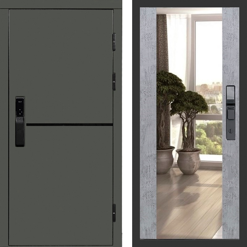 Входная стальная дверь Тренд Green Макси с зеркалом Бетон темный