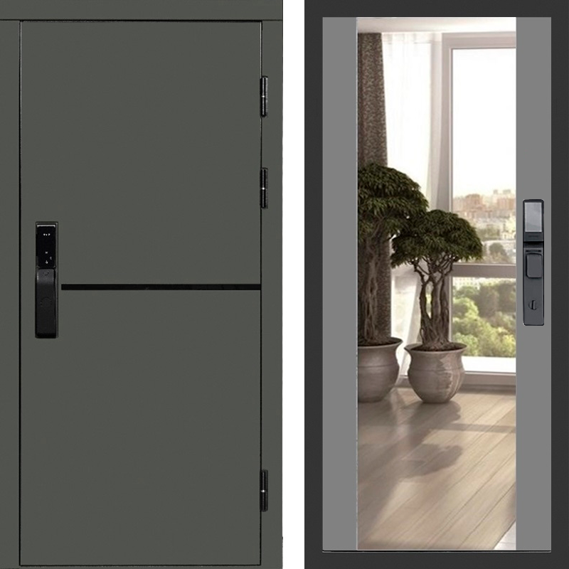Входная дверь Тренд Green Макси с зеркалом Грей софт