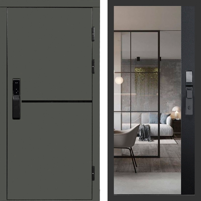 Входная дверь Тренд Green с зеркалом фацет Черный кварц