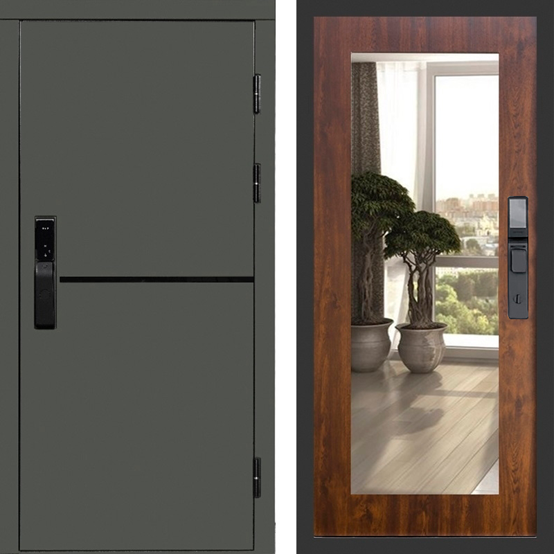 Входная стальная дверь Тренд Green Триумф с зеркалом Дуб