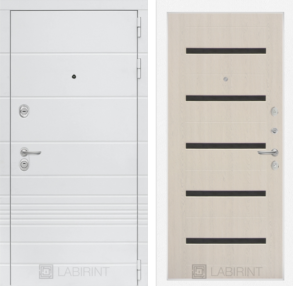 Входная белая дверь Лабиринт Трендо 01 - Беленый дуб, стекло черное