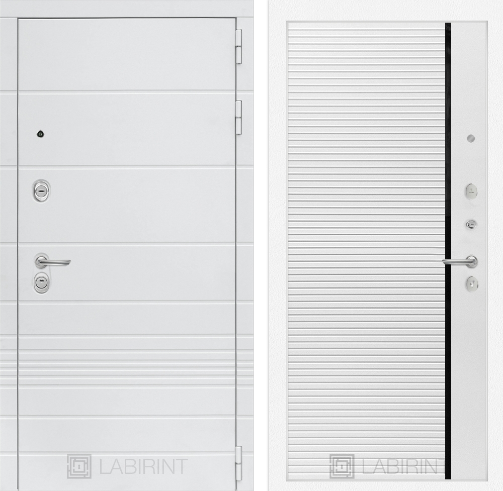 Входная белая дверь Лабиринт Трендо 22 - Белый софт, черная вставка