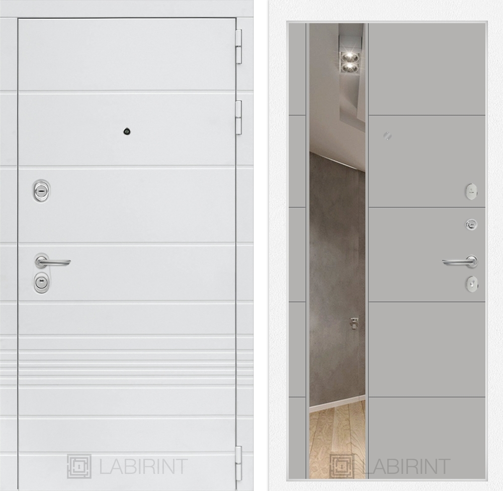 Входная белая дверь Лабиринт Трендо с Зеркалом 19 - Грей софт