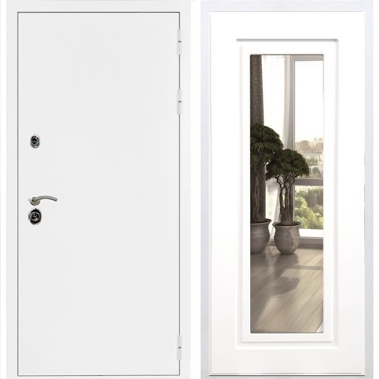 Входная стальная дверь Триумф Белая шагрень ФЛ-120 с Зеркалом Белый силк сноу