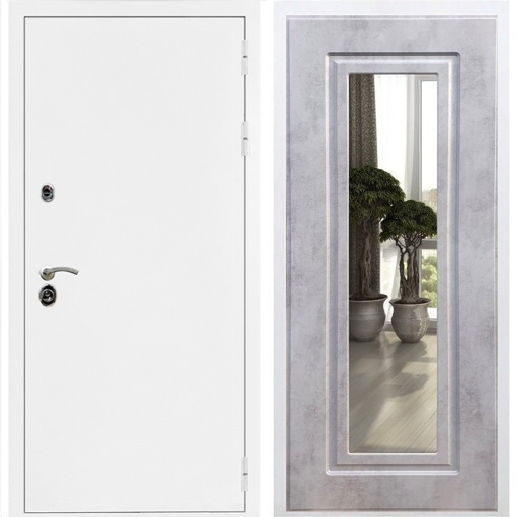 Входная стальная дверь Триумф Белая шагрень ФЛ-120 с Зеркалом Бетон темный