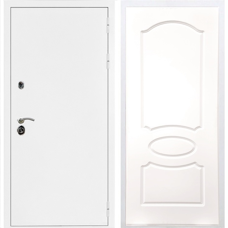 Входная стальная дверь Триумф Белая шагрень ФЛ-128 Белый силк сноу