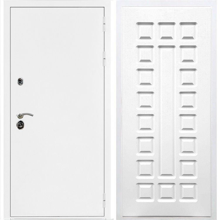 В комплект двери входит - Полотно + короб, декоративная панель, 2 - замка, личинка, ручки, декоративные накладки.