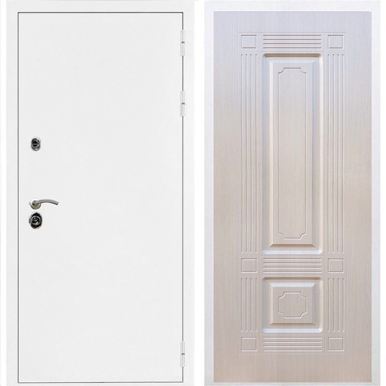 Входная стальная дверь Триумф Белая шагрень ФЛ-2 Лиственница беж