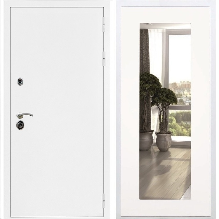 Входная стальная дверь Триумф Белая шагрень Пастораль Белый силк сноу с Зеркалом