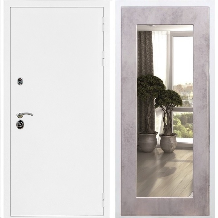Входная стальная дверь Триумф Белая шагрень Пастораль Бетон светлый с Зеркалом