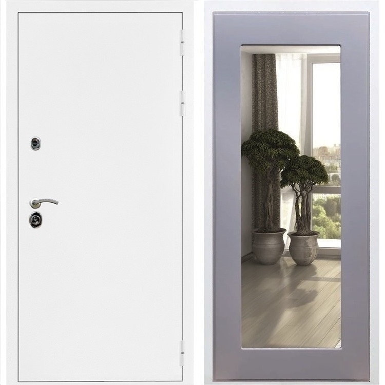 Входная стальная дверь Триумф Белая шагрень Пастораль Силк титан с Зеркалом
