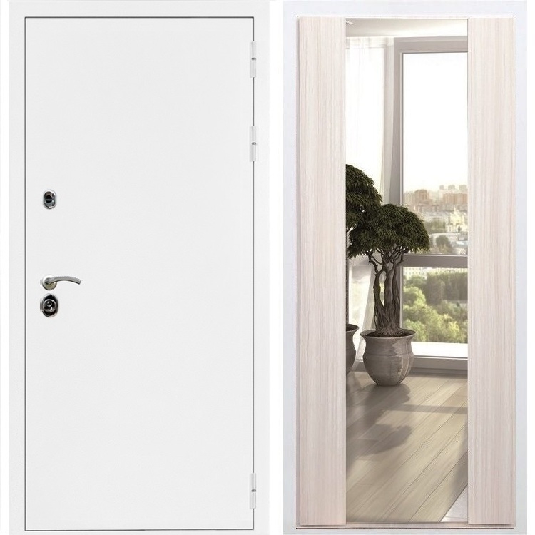 Входная стальная дверь Триумф Белая шагрень с Зеркалом СБ -16 Беленый дуб