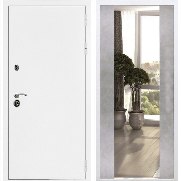 Входная стальная дверь Триумф Белая шагрень с Зеркалом СБ -16 Бетон светлый