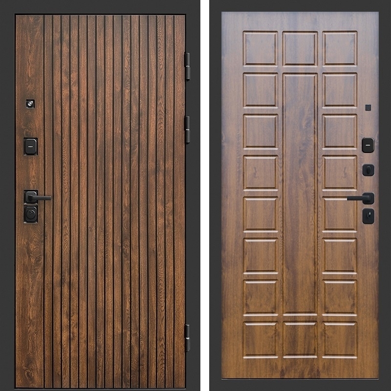 - В комплект двери входит - Полотно + короб, декоративная панель с двух сторон, 2 - замка, ручки, декоративные накладки.