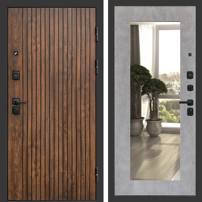 Входная стальная дверь ТВИСТ фл-251 с зеркалом Бетон светлый