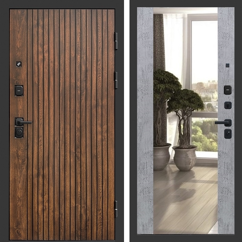 Входная стальная дверь ТВИСТ фл-252 с зеркалом Бетон темный