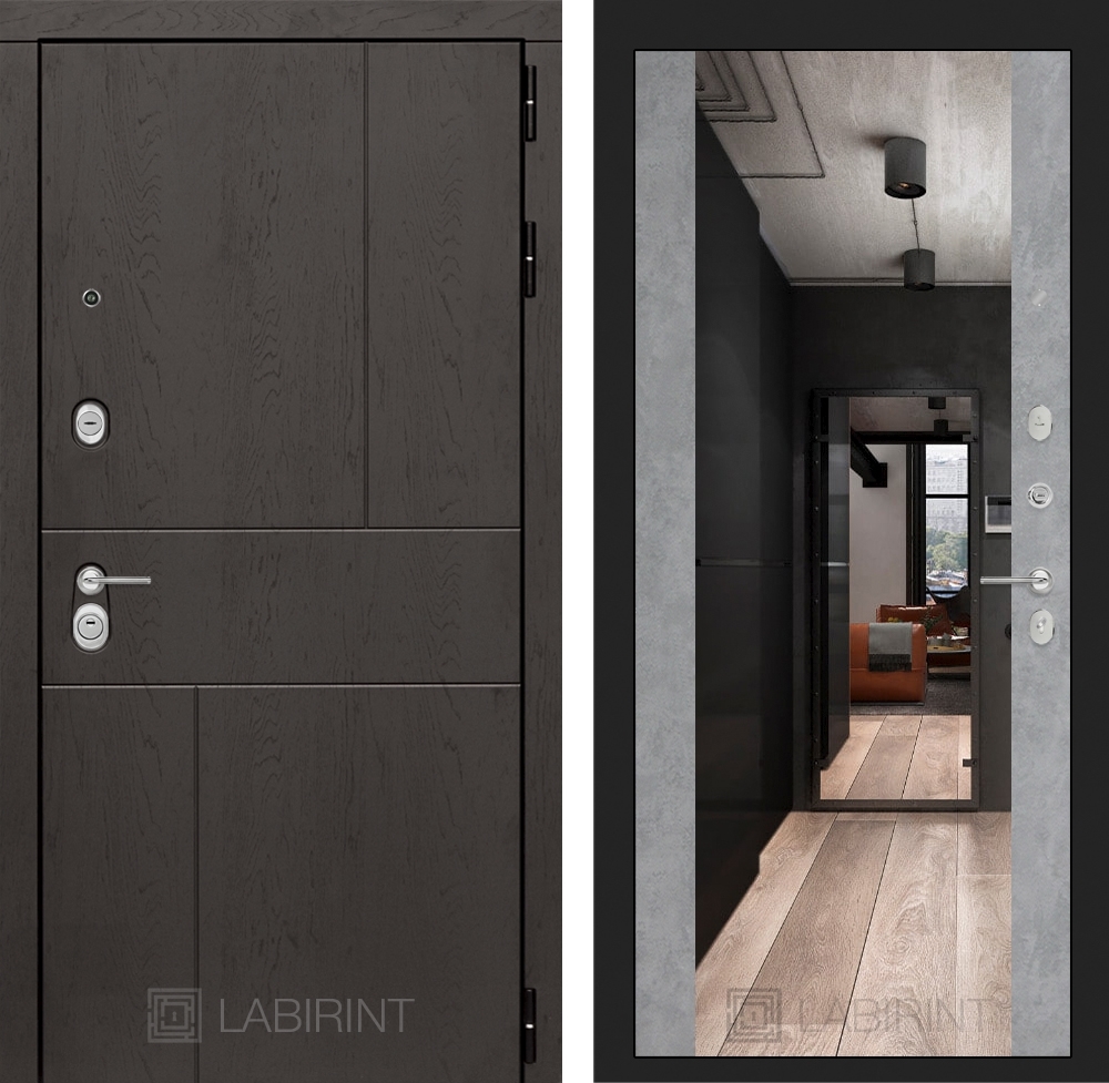 Входная дверь Лабиринт URBAN с Зеркалом Максимум - Бетон светлый