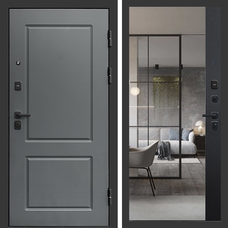 Входная дверь ВЕРОНА с зеркалом фацет Черный кварц