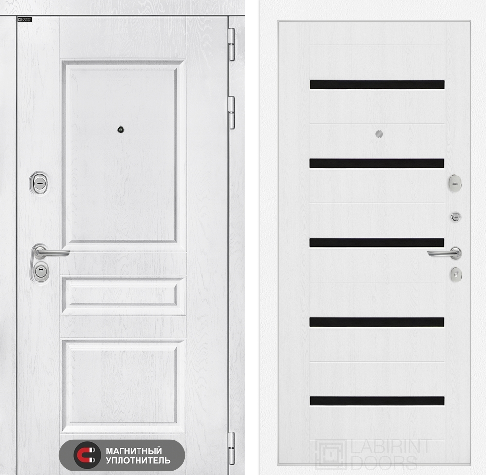 Входная стальная дверь Лабиринт VERSAL 01 - Белое дерево, стекло черное