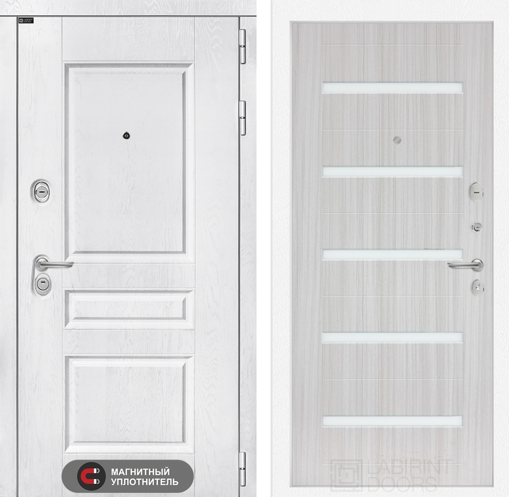 Входная стальная дверь Лабиринт VERSAL 01 - Сандал белый, стекло белое