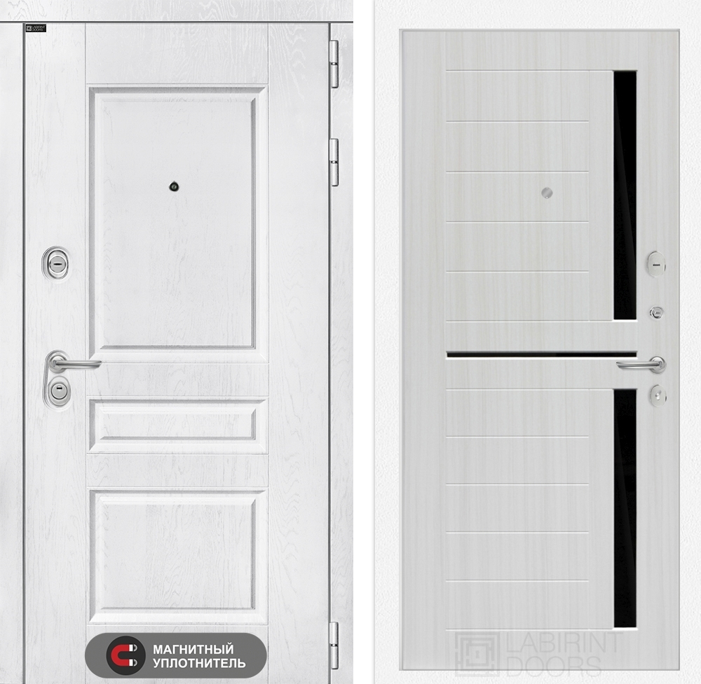 Входная стальная дверь Лабиринт VERSAL 02 - Сандал белый, стекло черное