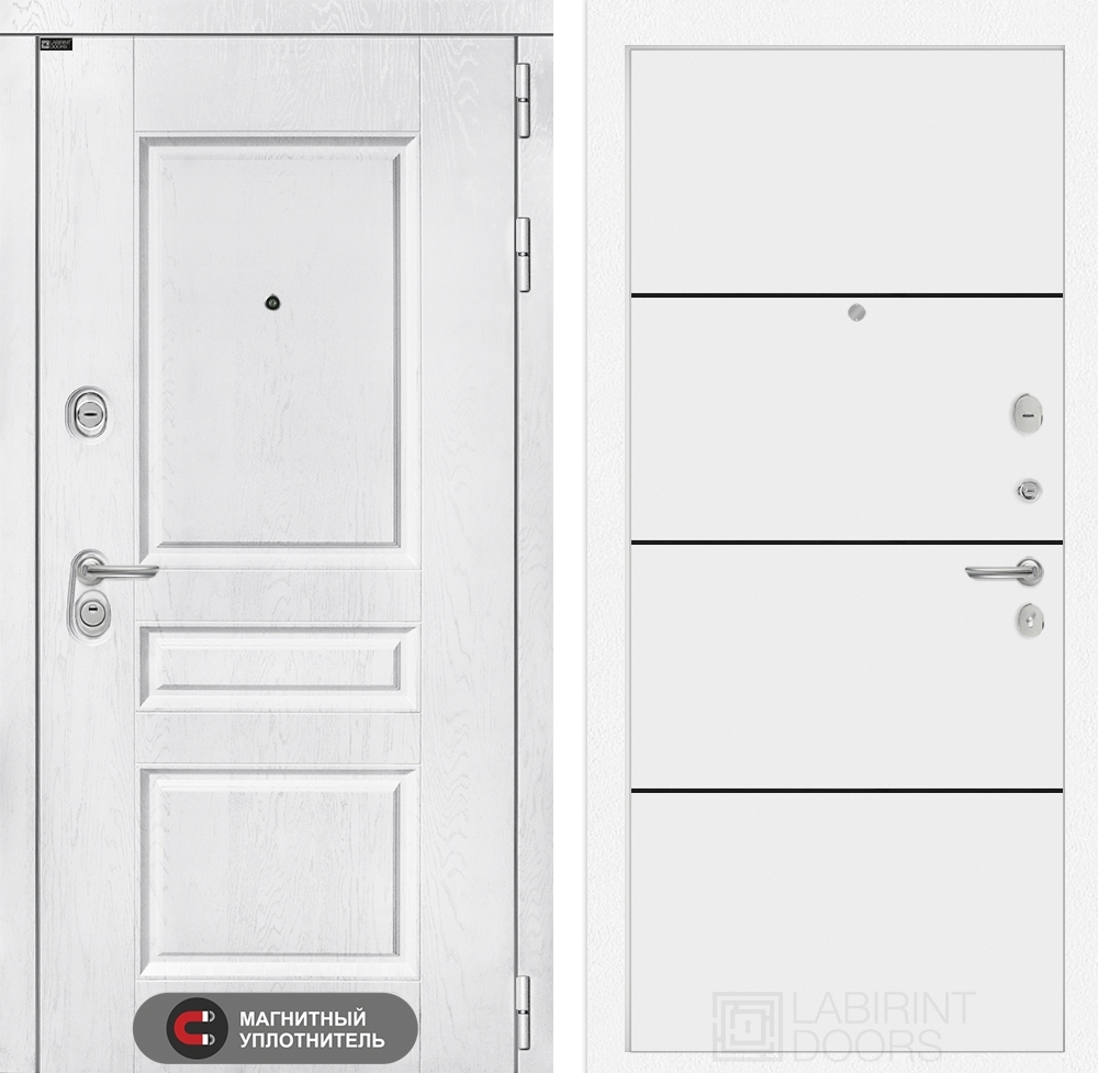 Входная стальная дверь Лабиринт VERSAL 25 - Белый софт, черный молдинг