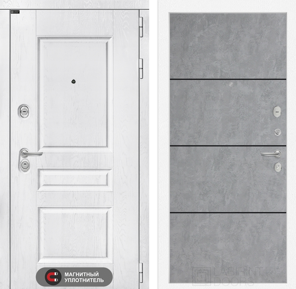 Входная стальная дверь Лабиринт VERSAL 25 - Бетон светлый, черный молдинг