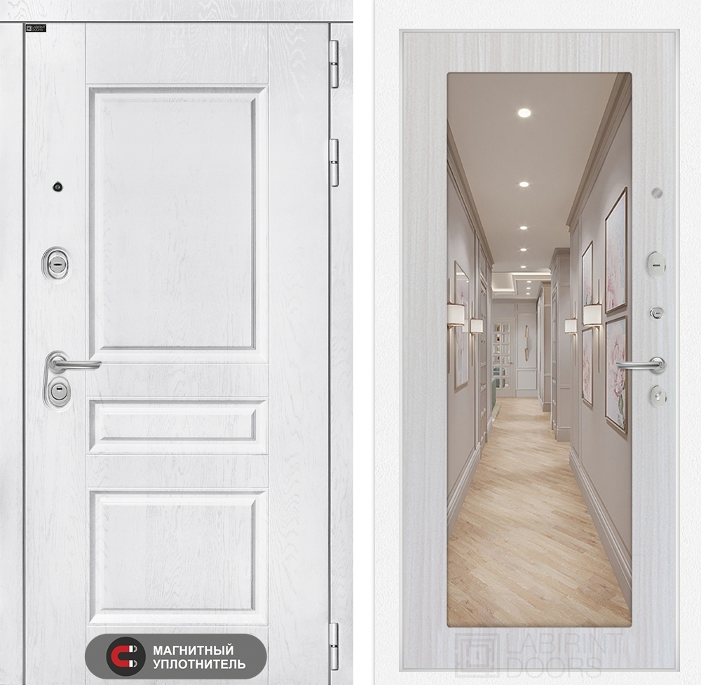 Входная стальная дверь Лабиринт VERSAL с Зеркалом 18 - Сандал белый