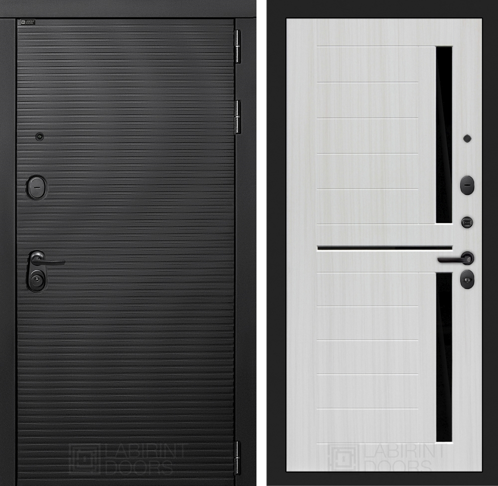 Входная стальная дверь Лабиринт VOLCANO 02 - Сандал белый, стекло черное
