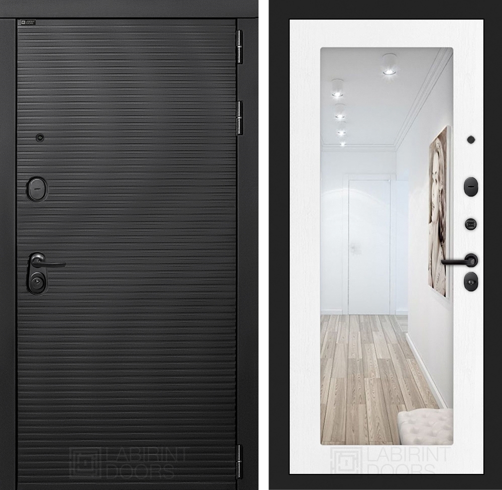 Входная стальная дверь Лабиринт VOLCANO с Зеркалом 18 - Белое дерево