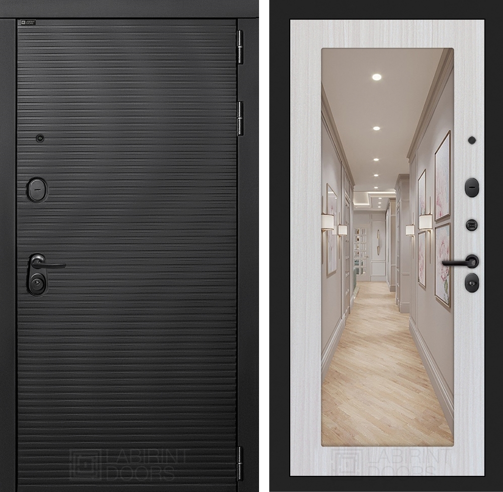 Входная стальная дверь Лабиринт VOLCANO с Зеркалом 18 - Сандал белый