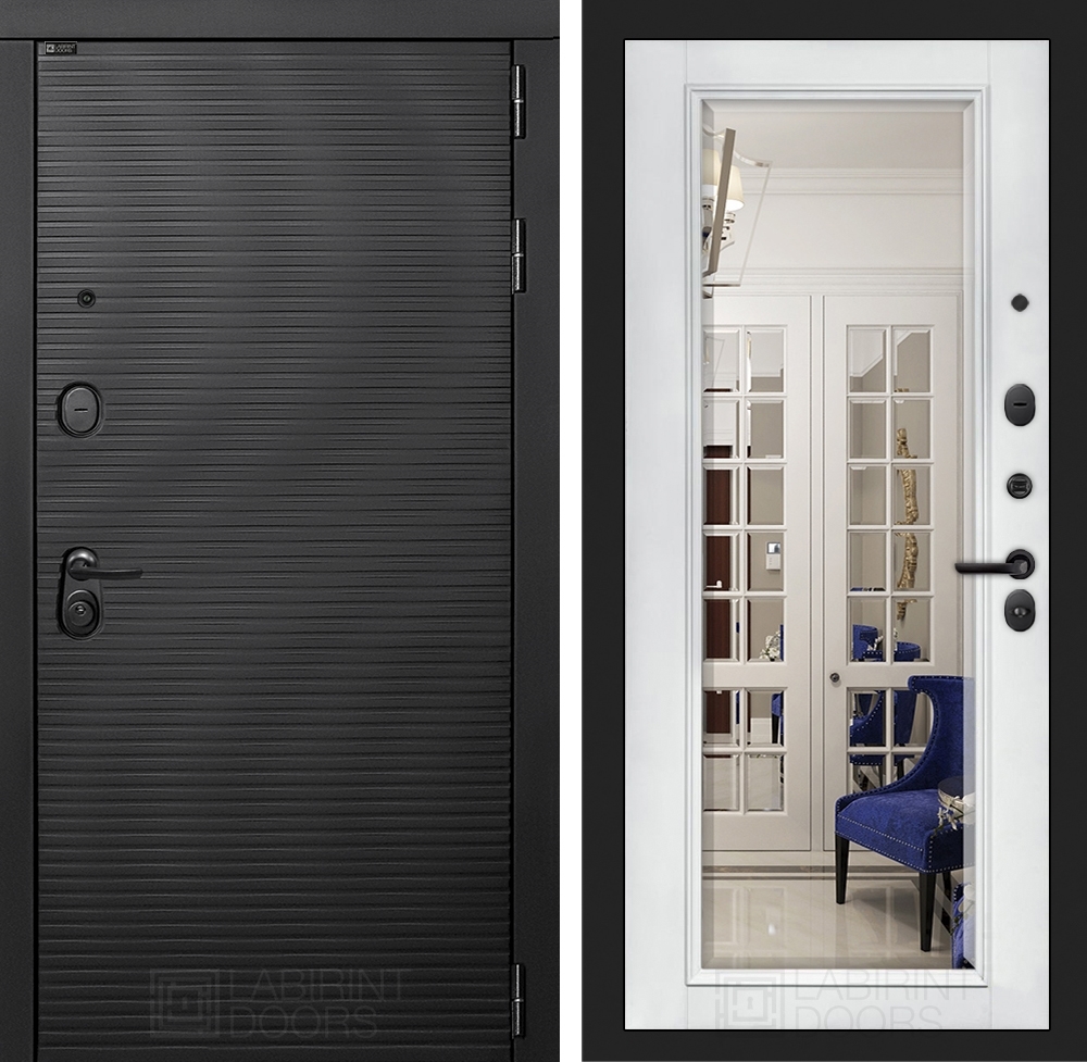 Входная стальная дверь Лабиринт VOLCANO с Зеркалом Фацет - Белый софт