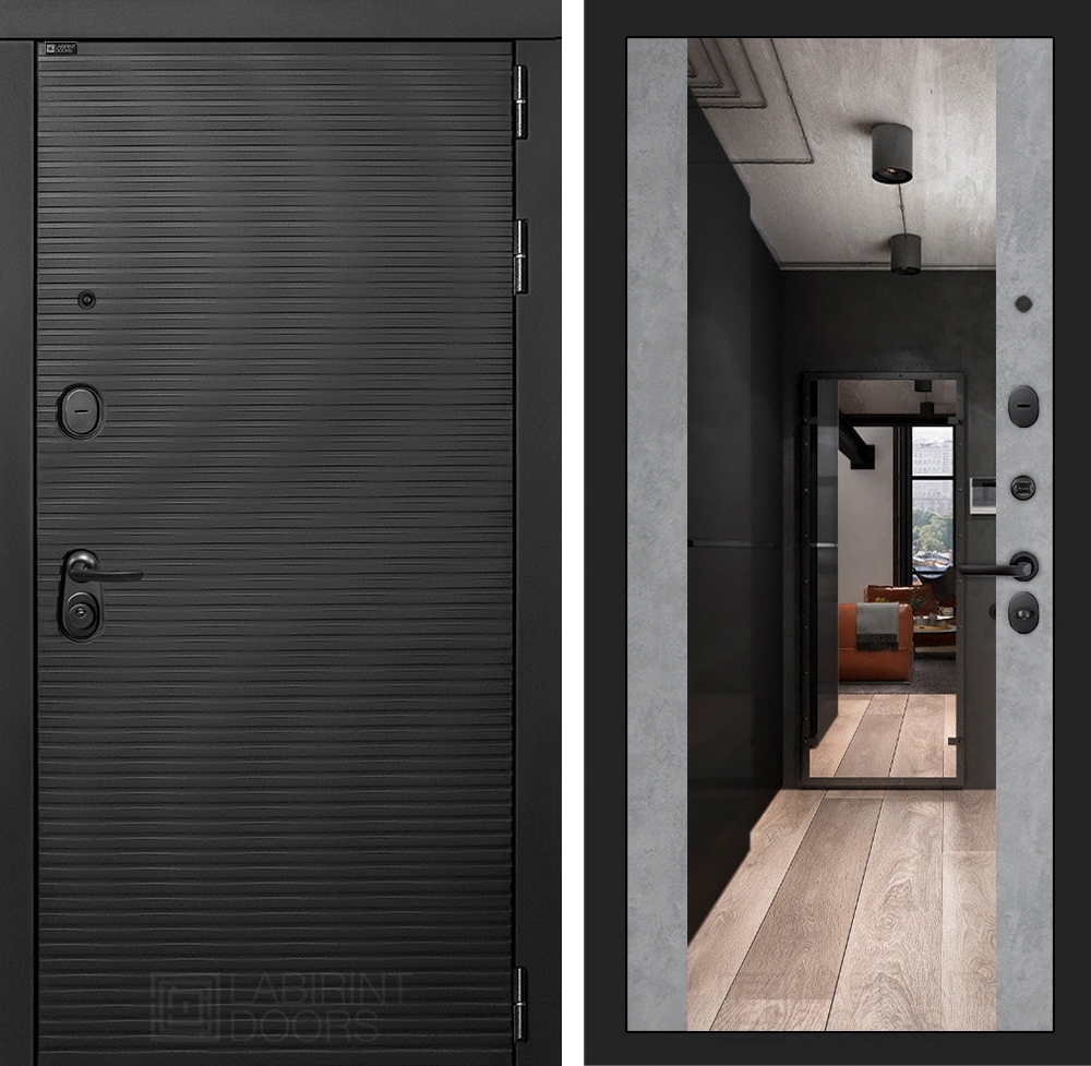 Входная стальная дверь Лабиринт VOLCANO с Зеркалом Максимум - Бетон светлый