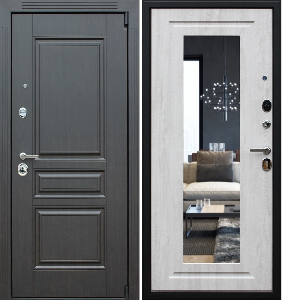 Входная стальная дверь АСД Гермес 3К New Элит с Зеркалом Сосна белая