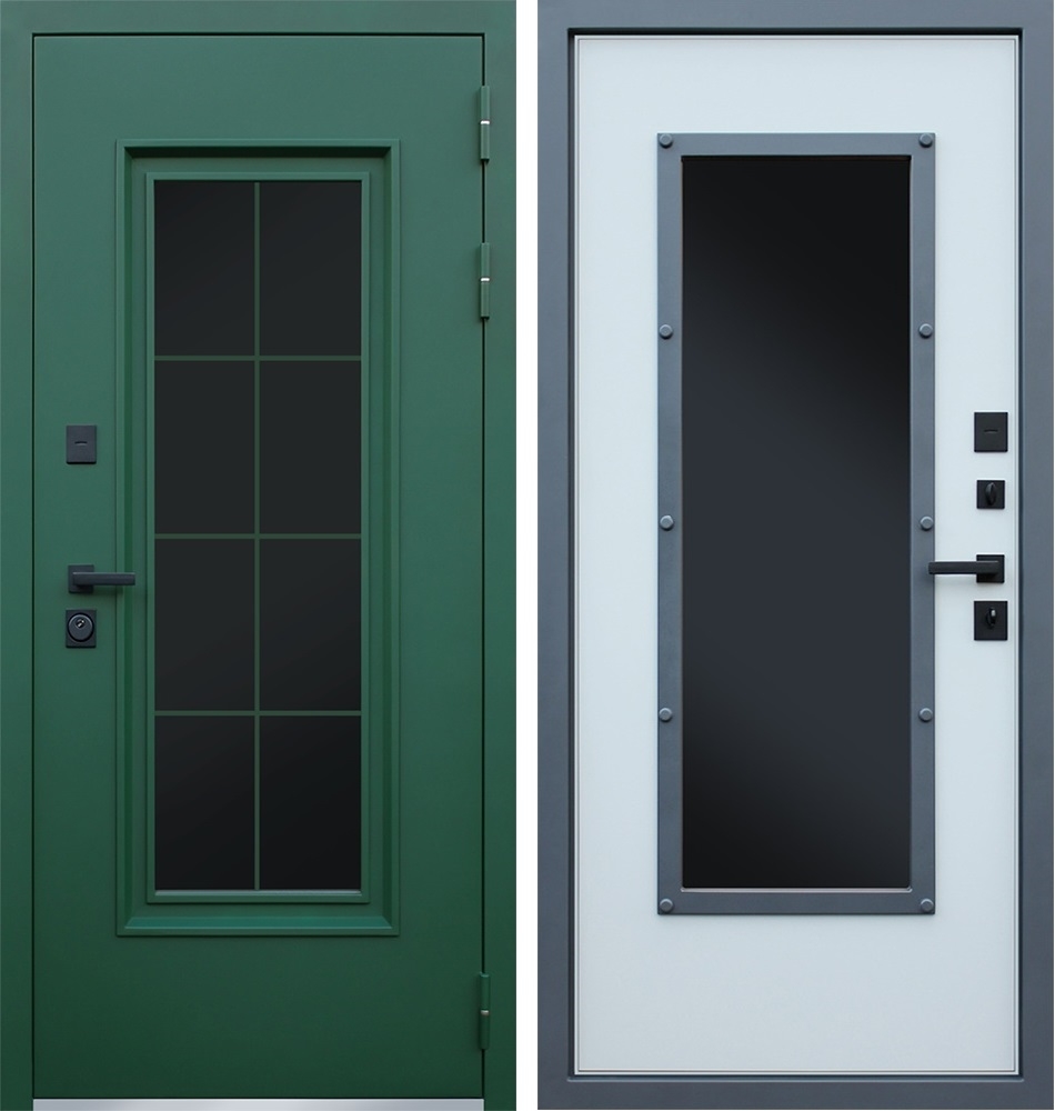 - Отделка снаружи: Металл с 2-х слойным покрытием - цинкогрунт, второй слой - порошковое покрытие. Металлофиленки 2шт. Наличник прямой. Английская решетка внутри тонированного стеклопакета
