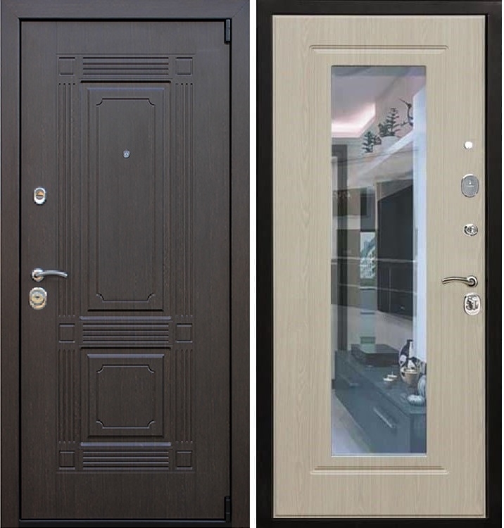 Входная стальная дверь АСД Викинг Беленый дуб с Зеркалом