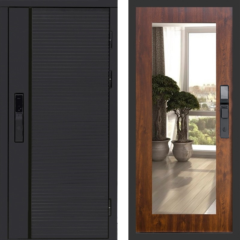 Входная стальная дверь Black Line Триумф с зеркалом Дуб