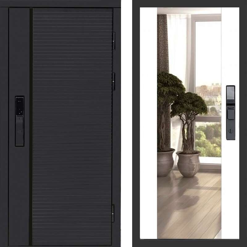 Входная стальная дверь Black Line Макси с зеркалом Белый матовый