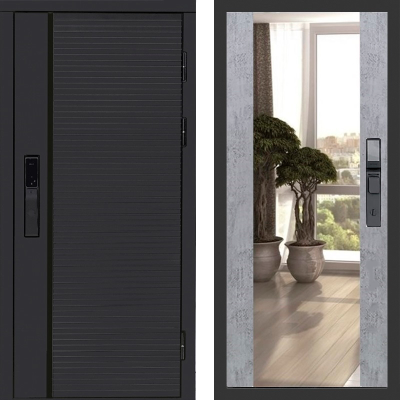 Входная стальная дверь Black Line Макси с зеркалом Бетон темный