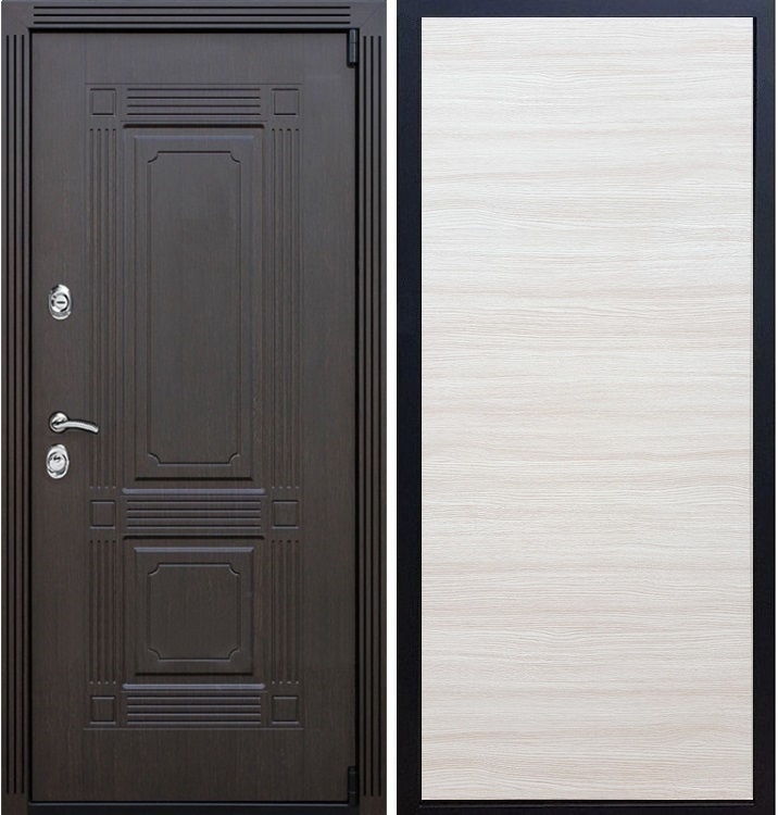 В комплект двери входит - Полотно + короб, декоративная панель с двух сторон, 2 - замка, личинка, ручки, декоративные накладки