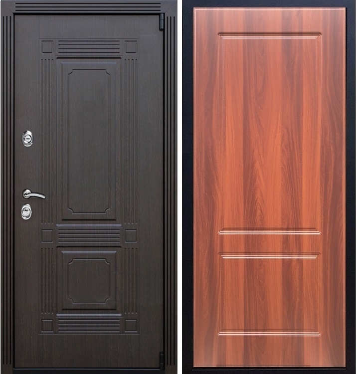 В комплект двери входит - Полотно + короб, декоративная панель с двух сторон, 2 - замка, личинка, ручки, декоративные накладки