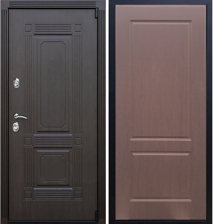 В комплект двери входит - Полотно + короб, декоративная панель с двух сторон, 2 - замка, личинка, ручки, декоративные накладки