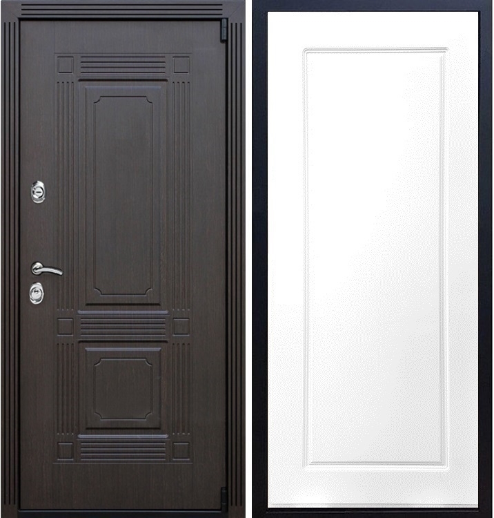 В комплект двери входит - Полотно + короб, декоративная панель с двух сторон, 2 - замка, личинка, ручки, декоративные накладки