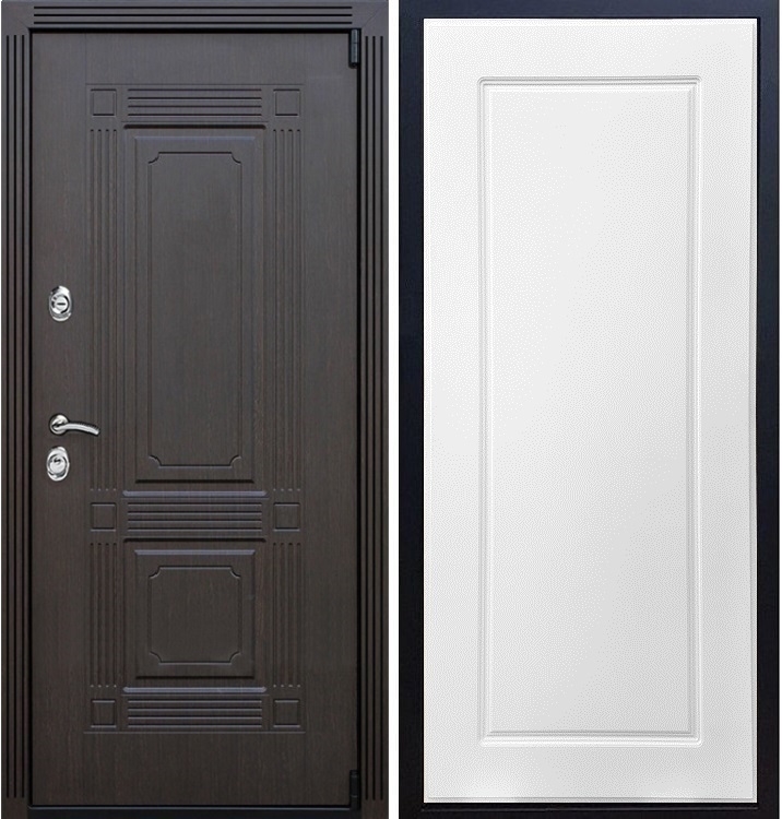В комплект двери входит - Полотно + короб, декоративная панель с двух сторон, 2 - замка, личинка, ручки, декоративные накладки